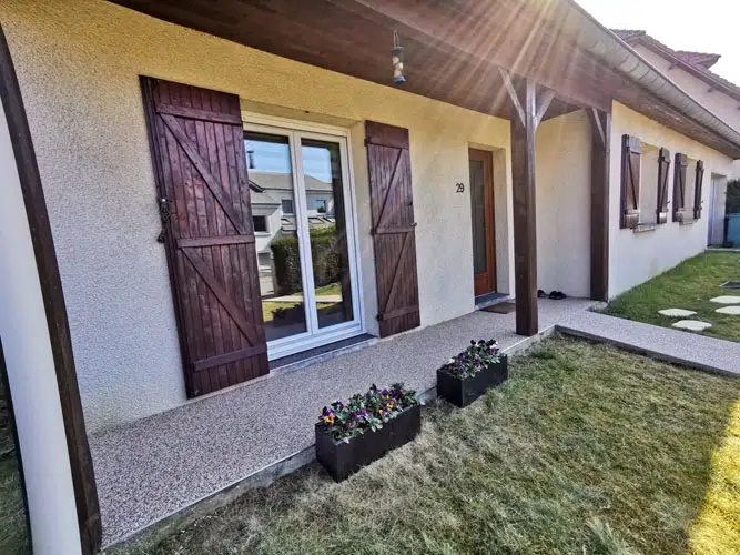 Sa résistance au froid, au gel et à la chaleur permet sa durabilité sans risques de se fissurer au fil des années. La résine transparente résiste aux ultraviolets (UV). Il n’y a aucun risque qu’elle blanchisse ou jaunisse suite à l’exposition prolongée du soleil sur le revêtement de vos allées extérieures. Elle est résistante également aux chocs et aux rayures dues à l’usure quotidienne. Un critère non négligeable pour un revêtement d’allées extérieures que vous emprunteraient tous les jours et où vos enfants prendront plaisir à jouer dessus.